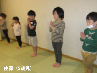 は、住職でもある理事長先生が月に1回、年長児にむけて坐禅を行っています。